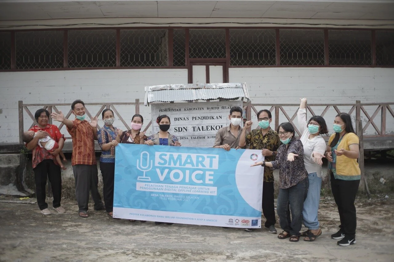 Fast forward to February 2021, with the support of UNESCO and AIYP, Ranu Welum is trusted to run a COVID-19 response project and we’re initiating a digital offline learning kit as an alternative solution for the school in remote areas in Central Kalimantan that had difficulties to use ‘online’ school policy as suggested by the government of Indonesia. This project is called “Smart Voice”.