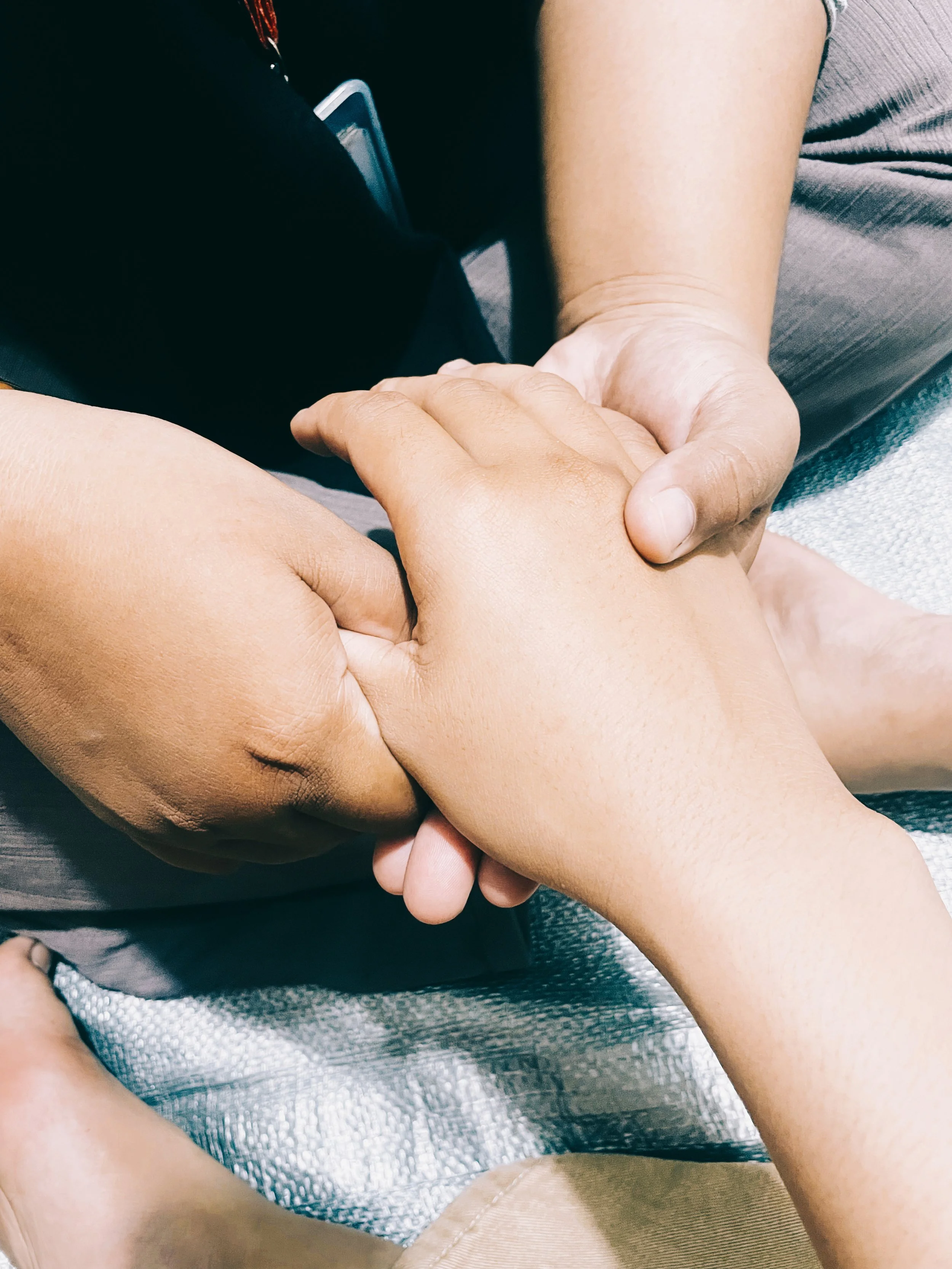 Fingerhold technique, used for relaxation and stress management to help victims of disaster